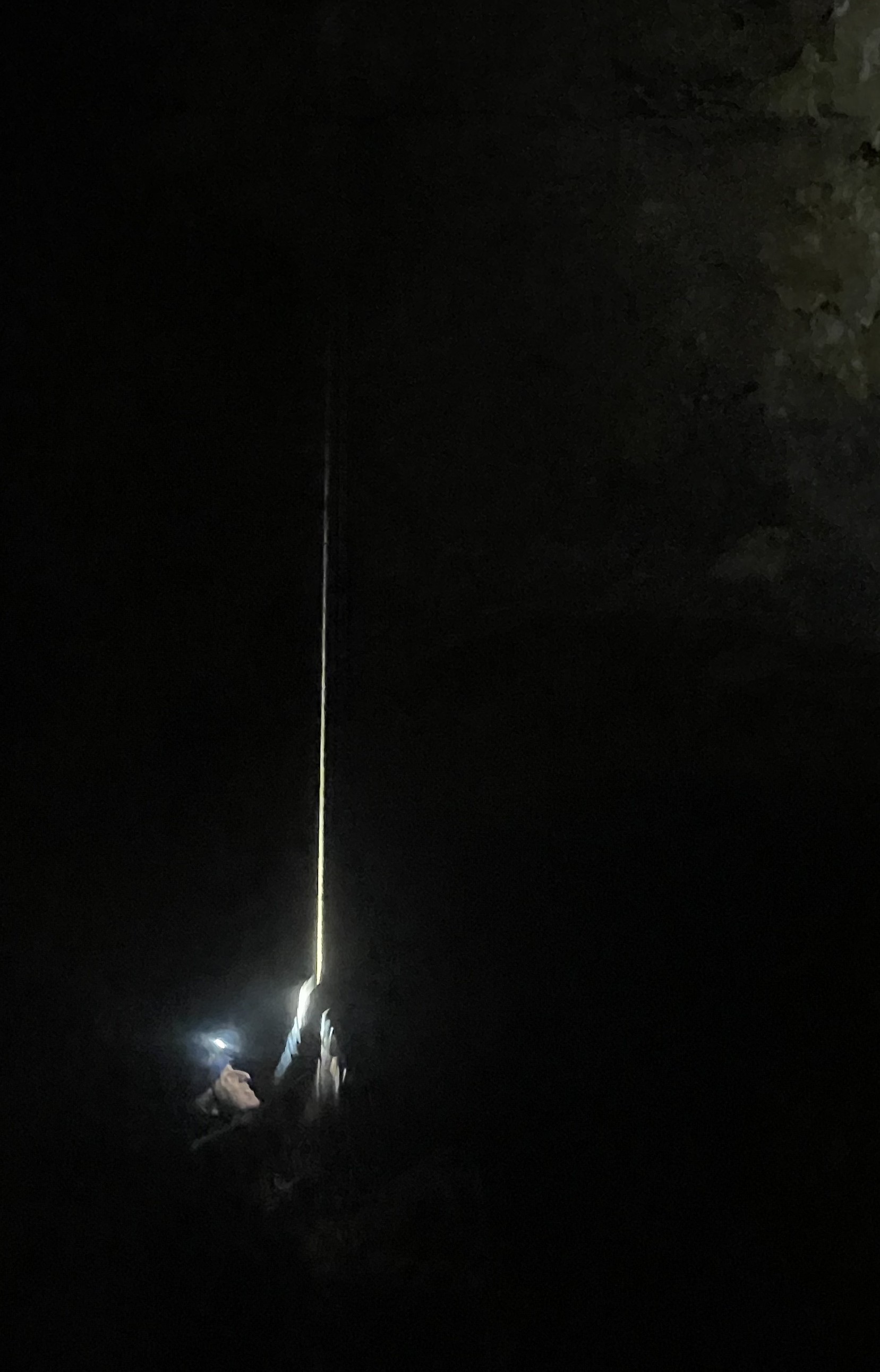 En quittant la « Salle du Chat » David explique quelques astuces d’équipement à Antoine et Vincent, notamment le double-nœud de chaise. Vincent prend en charge le déséquipement de la main courante qui contourne la base du P54 se prolongeant vers le bas par le « Puits du Lac ». Bien que sans grande difficulté, calme et concentration sont de rigueur pour déséquiper la corniche glissante qui surplombe le « Puits du Lac ». C’est ensuite Antoine qui prend le relai pour le déséquipement jusqu’à la surface, exercice physique et chronophage autant dans les étroitures qu’au niveau des têtes de puits où il faut tendre les bras.