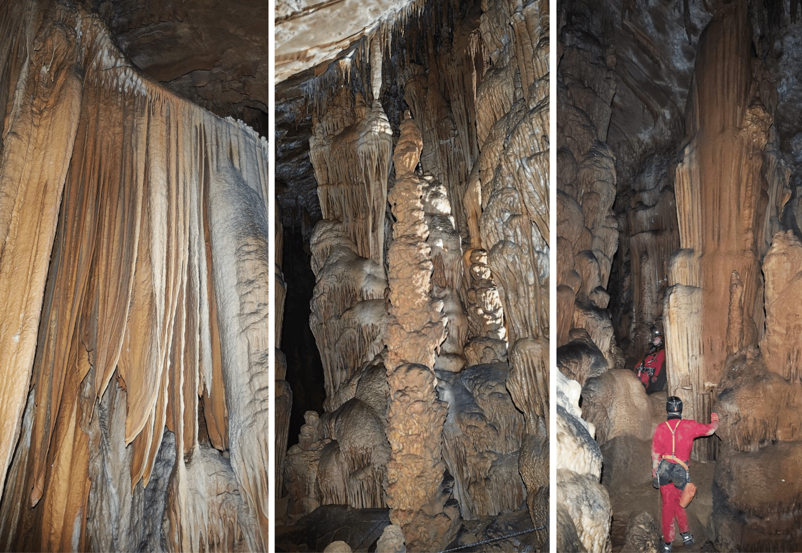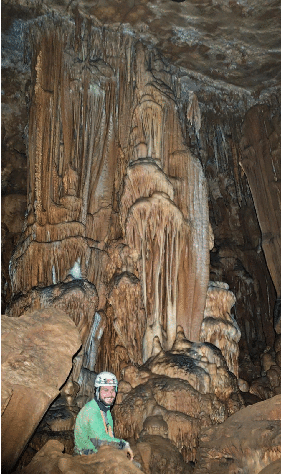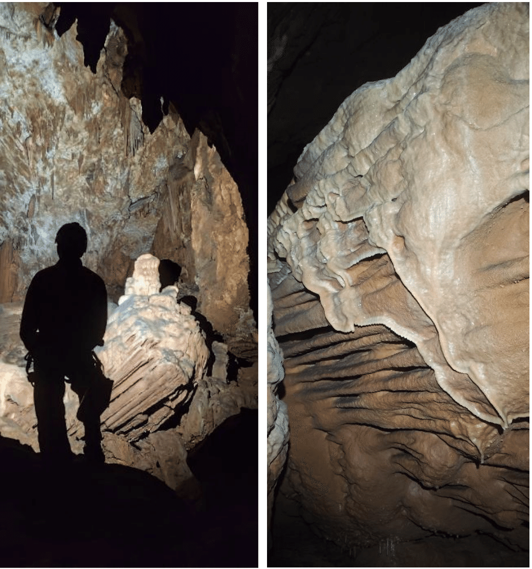 Florian nous confie que c’est une de ses grottes préférées, d’ailleurs David évoque que c’est dans cette cavité non-aménagée qu’il eut observé pour la première fois de belles draperies.